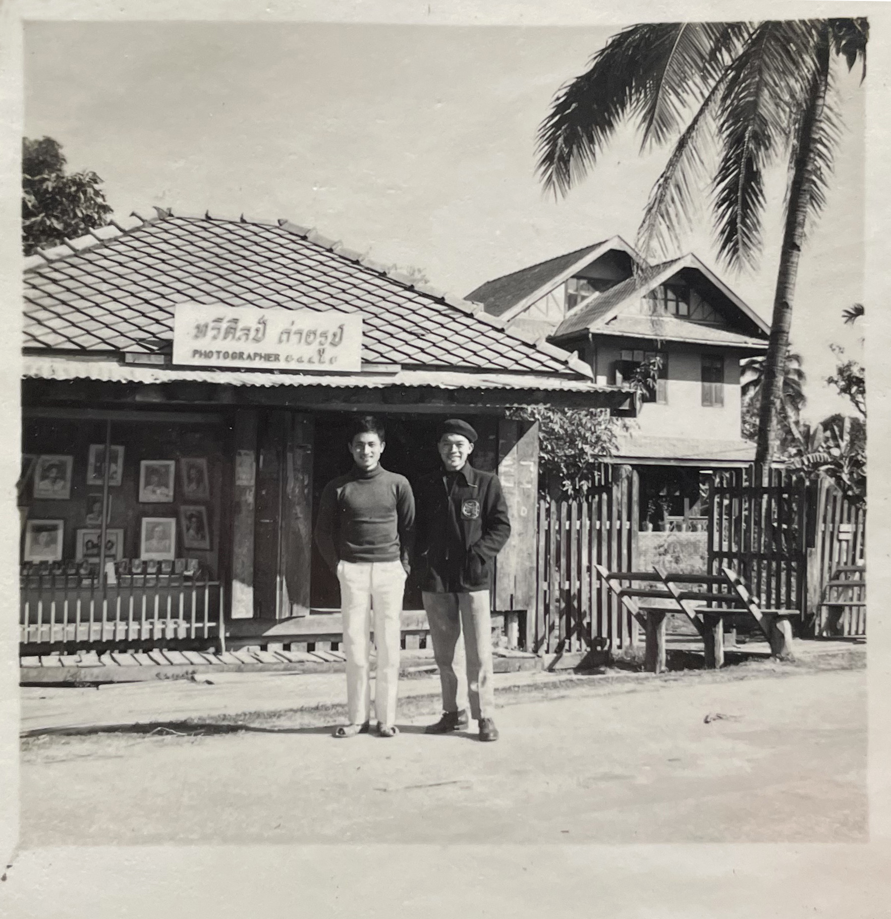 ..ภาพประมาณ 70 ปีที่ผ่านมา สองช่างภาพหนุ่มของห้องภาพทวีศิลป์ ยืนถ่ายรูปหน้าห้องถ่ายรูป ซึ่งปัจจุบันเรามักจะเรียกว่า ห้องสตูดิโอ .คนด้านซ้ายคือ นพคุณ จริยพงศ์ไพบูลย์ คนด้านขวาคือ จรูญ คำแสน ผู้ซึ่งภายหลังเป็นก่อตั้งห้องภาพฟองเสรี ภาพนี้ถ่ายประมาณปี พ.ศ. 2497