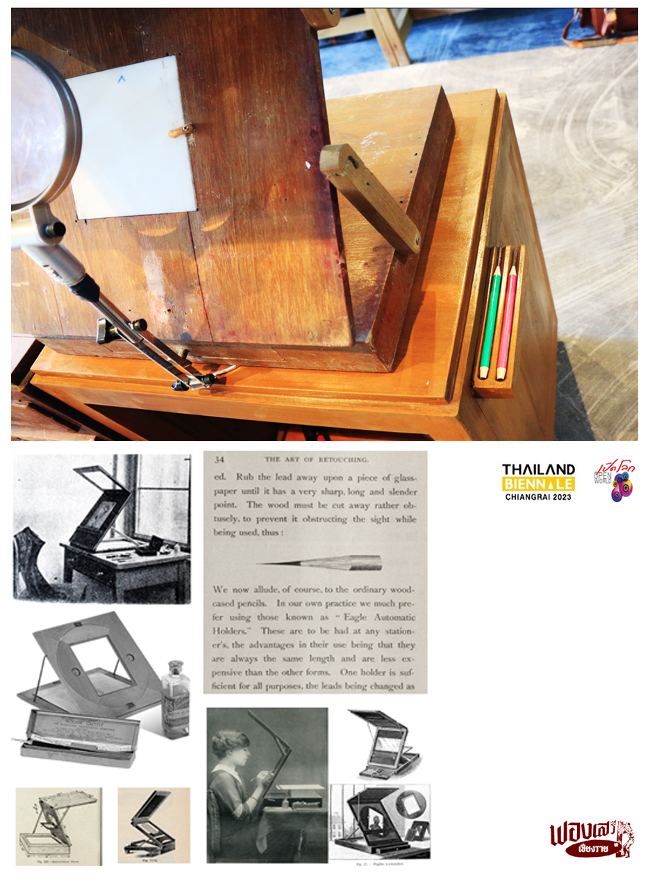 ภาพโต๊ะแต่งฟิล์มเนกาทีฟ (negative retouching desk) ที่ปัจจุบันห้องภาพฟองเสรียังใช้ในกระบวนการผลิตภาพถ่าย ซึ่งศิลปะการแต่งฟิล์มเนกาทีฟมีมากว่า 150 ปี เป็นที่นิยมในอเมริกาและยุโรป และเผยแพร่มาทางเอเซียราวๆ 80 ปีที่ผ่านมา